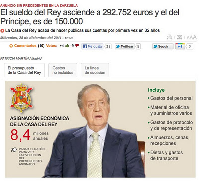 "La dotación y gastos de la Familia Real suponen el 9,65% del presupuesto de la Casa del Rey, que destina casi el 50% de su asignación anual al capítulo denominado Personal, donde se incluyen los salarios de 18 personas y complementos salariales de los casi 500 empleados de la institución."